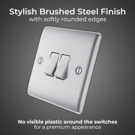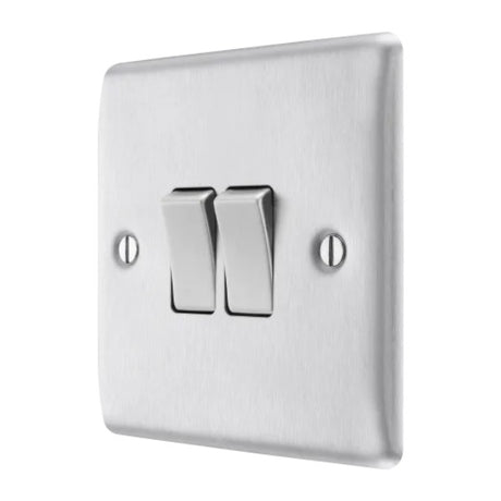BG Nexus Metal Brushed Steel Double Light Switch 20A, 16AX, 2 Way