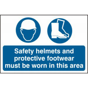 400x600mm Safety Helmets & Footwear Must Be Worn PVC Sign | Health and Safety Signage
