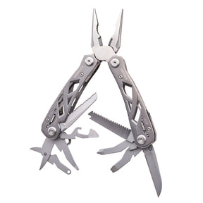 The Gerber Suspension Multi-Tool packs 12 essential functions into one compact, stainless steel design. Built for tradespeople, outdoor adventurers, and DIY users, it combines spring-loaded pliers, a Saf.T Plus locking system, and an open-frame construction for strength and safety.