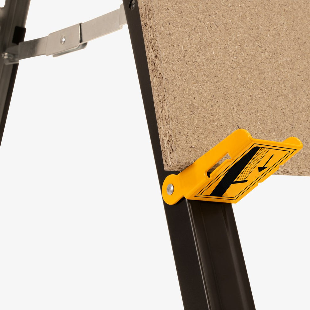 Roughneck has included several "smart" features that solve common site problems. The unique Pipe-Prop feature is a game-changer for plumbers and electricians, providing a stable notch for 15mm and 22mm pipes that usually roll away during cutting. For carpenters, the extendable timber supports transform the sawhorses into the foundation of a sacrificial work bench or a large-scale assembly table by simply adding standard 2x4s. Additionally, the sheet material support arms allow a single user to manage large plywood or OSB boards vertically, making it safer and easier to mark and cut without needing a second pair of hands.
